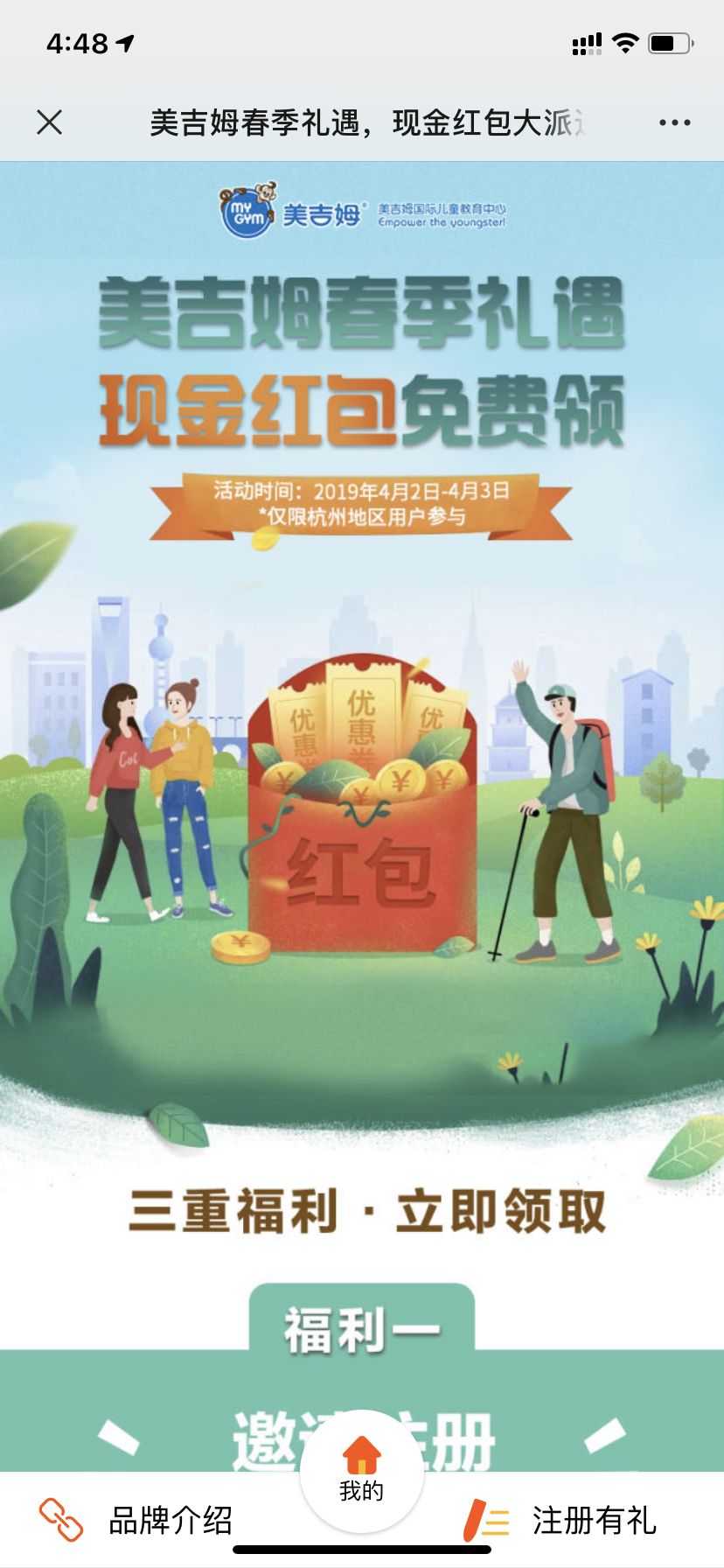 春季礼遇主题,以分享+基础浏 览+注册表单作为红包返现任务 促使传播,非会员免费领课包获 取名单